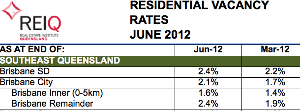 The Queensland rental market remained constricted at the midway point of 2012, according to the latest Real Estate Institute of Queensland’s residential rental vacancy rate survey. The REIQ June vacancy rates - compiled from surveying property managers from REIQ accredited agencies across Queensland - shows demand for rental properties is still exceeding supply in many parts of the State. As at the end of June, rental vacancy rates in many areas remained below 3 per cent, which is considered the equilibrium point of rental supply and demand.
